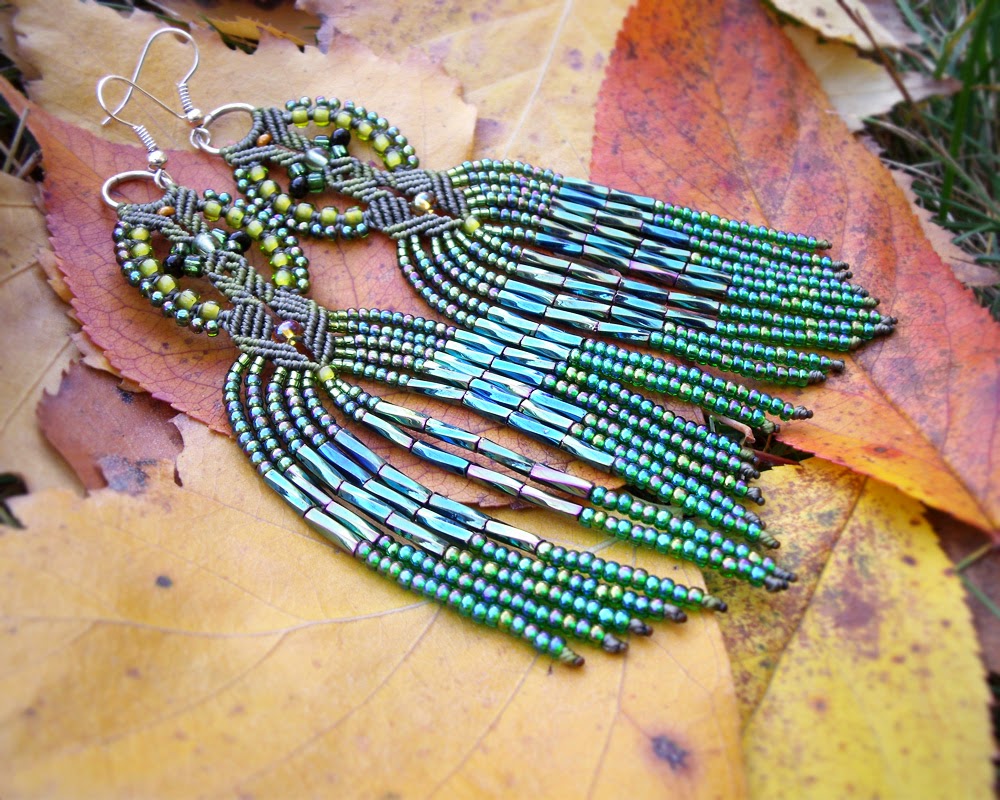 Materials used: Czech beads and seed beads, nylon cord and findings.